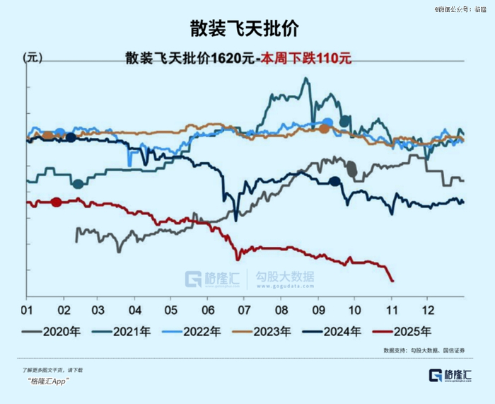 53度飞天茅台散瓶批发价跌破1600元,报1640元的历史新低,较年初跌超31%。
