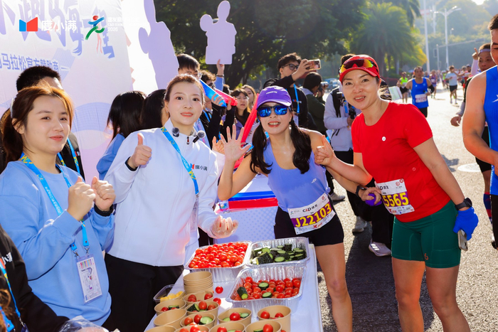 在比赛当天,巴黎奥运会羽毛球混双冠军黄雅琼现身厦马赛道17.7公里处的度小满补给点,为途经的跑者送上贴心补给、加油助威,希望他们安全完赛并取得理想的好成绩。