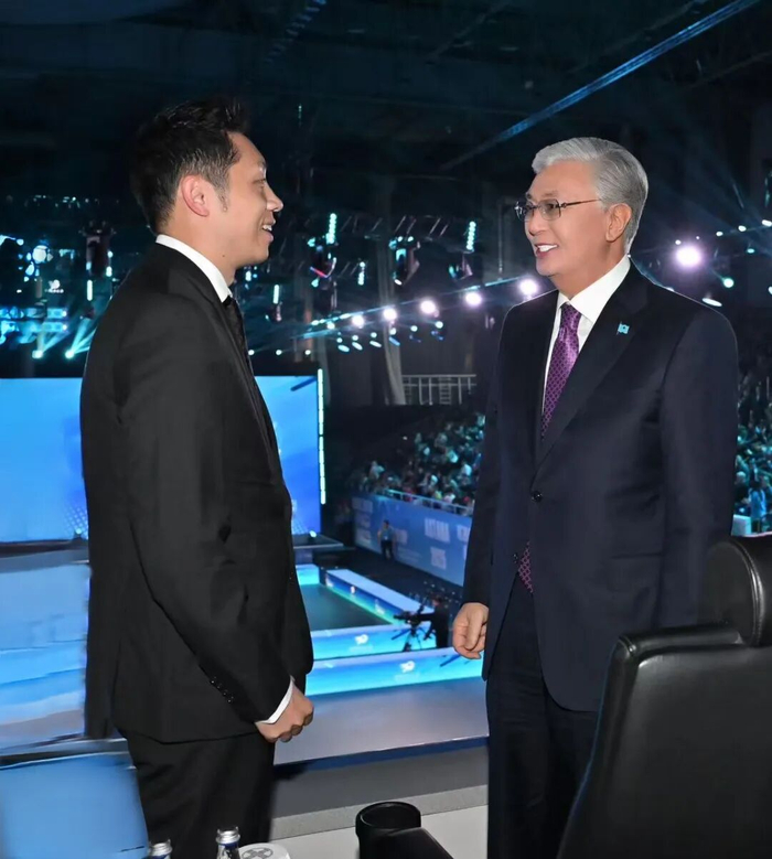其后,许昕应总统邀请共同观赛并互换礼物。活动现场气氛热烈,通过乒乓球运动推广,促进两国体育界的友好交往,拉紧中哈友好交流和民心相通的纽带。