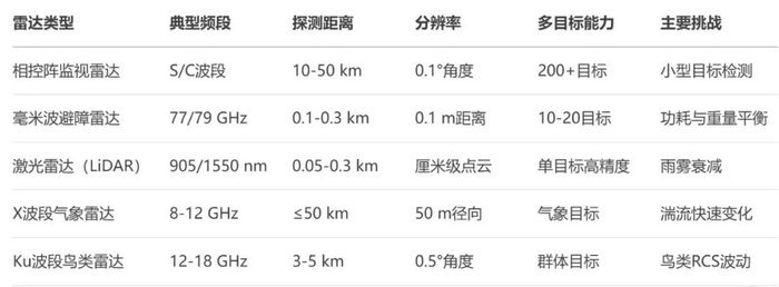 技术特点:相控阵雷达+AI图像识别。微波多普勒雷达探测鸟类群体运动。