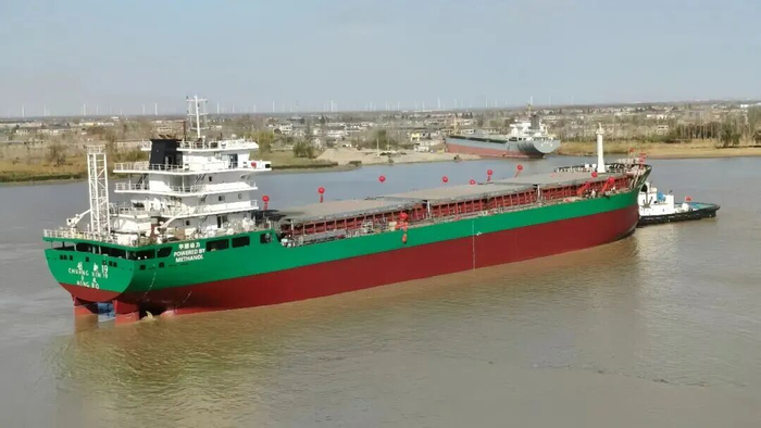 近日,江苏勤丰船业有限公司建造国内首艘15000吨级甲醇单一燃料动力江海直达散货船“创新19”轮举行吉水仪式。