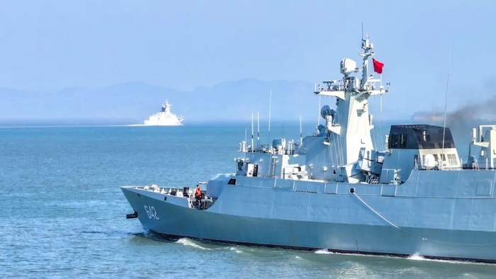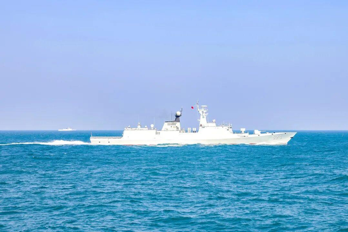 近日,东部战区海军某护卫舰支队衢州舰、温州舰、德阳舰等多艘舰艇组成编队,开展多课目实战化训练,检验编队协同作战水平。