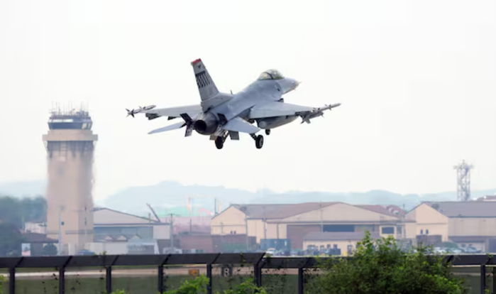 驻韩美军乌山基地起飞的F-16战机