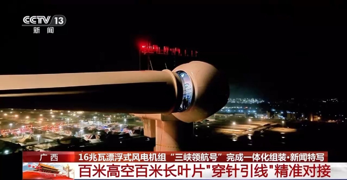 百米高空“穿针引线” 全球首台16兆瓦漂浮式海上风机安装完成