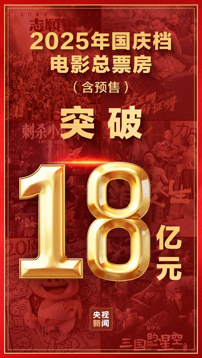 截至10月8日15时44分,2025年国庆档电影总票房(含预售)破18亿!