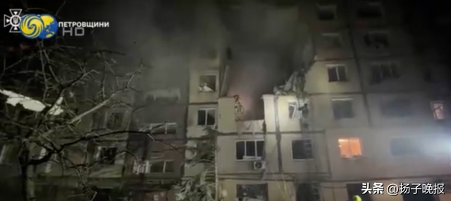 第聂伯罗州应急部门公布的画面显示,当地一栋公寓楼遭到无人机袭击,被炸开一个大洞,冒出浓烟,建筑内部并发生火灾,有伤者陆续从公寓楼内被救出。