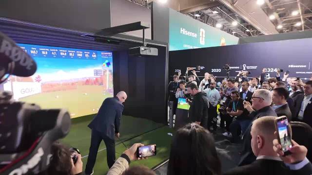 因凡蒂诺体验海信激光电视的高尔夫球模拟游戏。