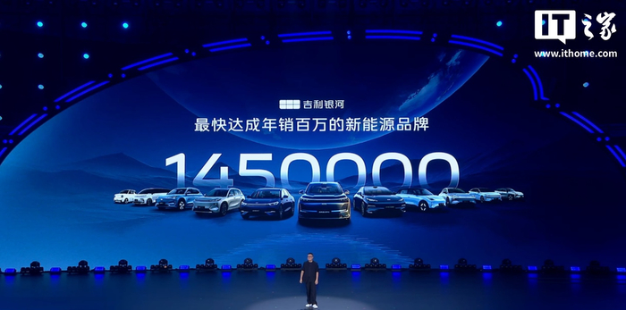 IT之家 10 月 10 日消息,在今晚的 2025 吉利汽车用户大会及 2026 款吉利星愿上市发布会中,吉利银河宣布成为最快达成年销百万的新能源品牌。