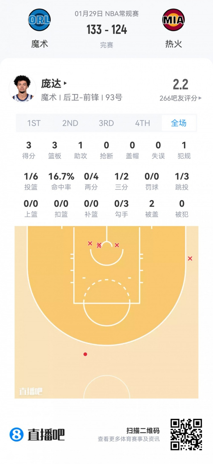 魔术次轮32号秀诺厄·庞达 登场7.9分钟