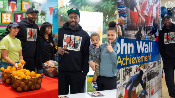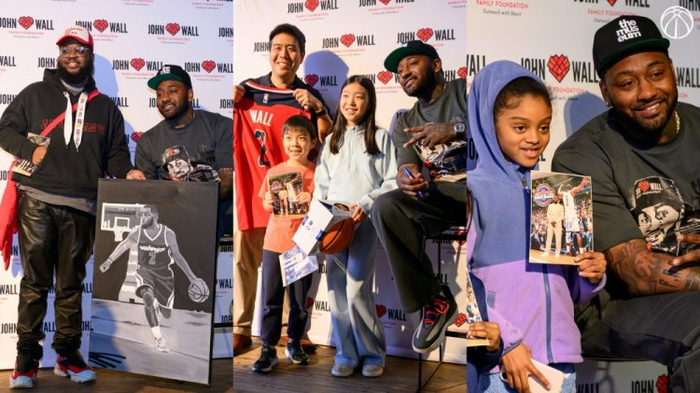 直播吧3月26日讯 今日,奇才官方晒出了前NBA球员沃尔在华盛顿进行回馈社区活动的照片。
